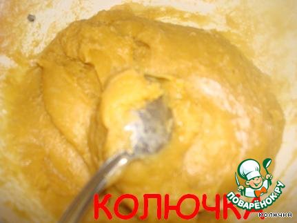 Затем снова стакан муки и мешаем, сразу говорю, немного тяжело, тесто густеет быстро, поэтому я держала на бане 3 минуты