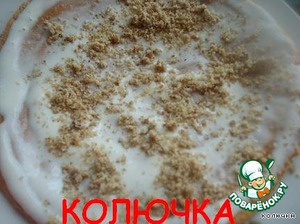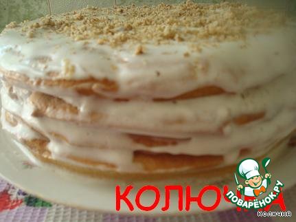 И складываем торт, промазываем кремом и посыпаем орехами