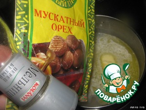 ...немного соли, мускатный орех и белый перец (можно чёрный).