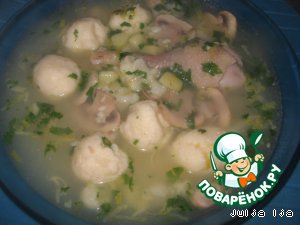 Из манно-сырной массы вылепить шарики-клёцки. Размер - на Ваш вкус и усмотрение. Кладём клёцки в суп.