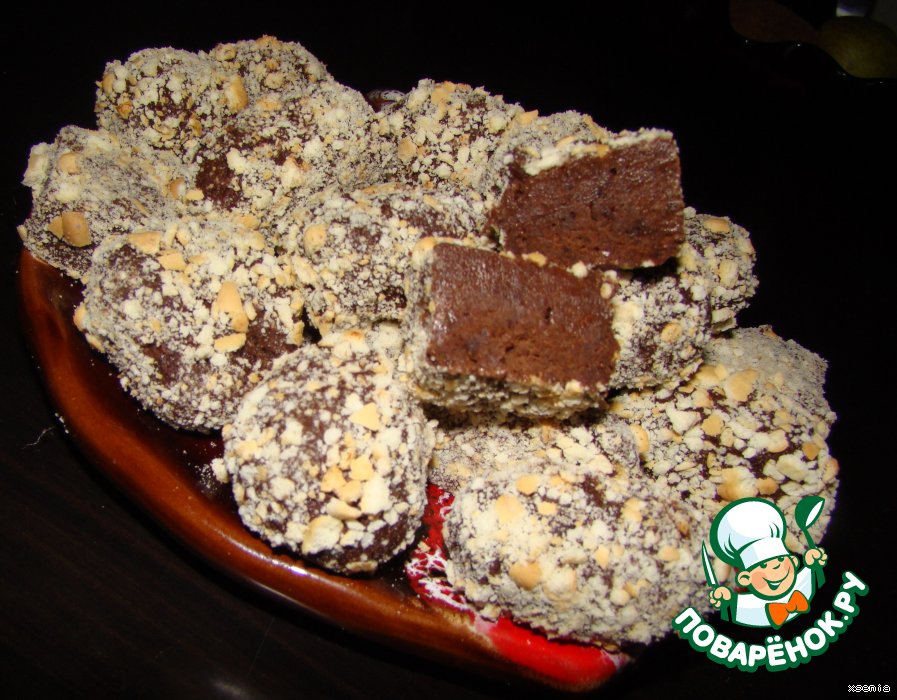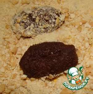 Из готовой массы формируем печенье любой формы. И обваляем в крошке из печенья.