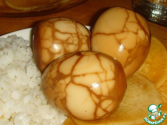 Это популярная китайская закуска со множеством вариаций чайного маринада. Я категоричеси убрала анис - ассоциация с лекарством от кашля стопроцентная- и корицу (я ее просто не люблю). Но это мои личные предпочтения.