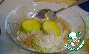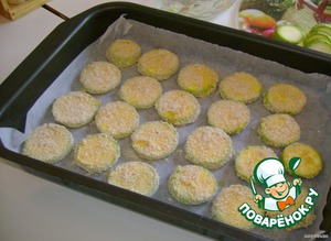 Запеченные ломтики кабачков в хрустящей корочке - чего же проще? Попробуйте в качестве горячей закуски...