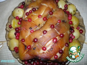 Выкладываем на блюдо и украшаем клюквой. Подавать горячим. Приятного аппетита!
