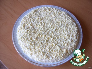 5 слой - сырный слой смазываем майонезом и присыпаем яичным желтком.