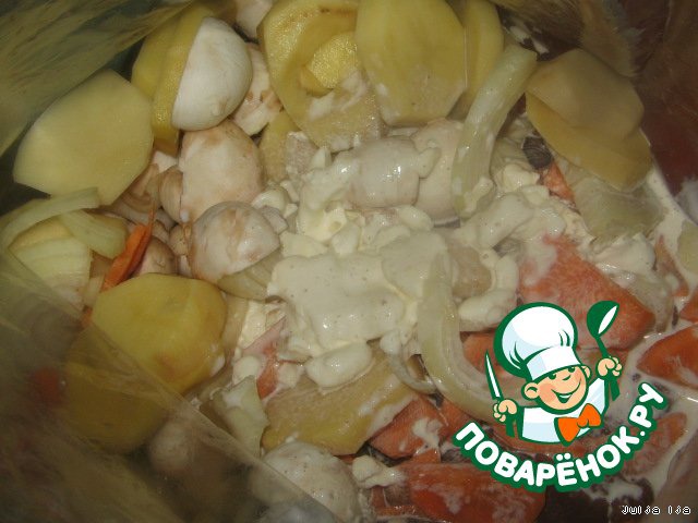 Рецепт «Картофель с печенью и грибами в рукаве»: