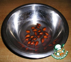 Теперь, спустя несколько часов (или ночь), разбухшие миндалинки необходимо очистить от кожицы.