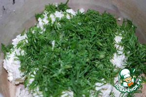 Зелень моем и мелко нарезаем. Добавляем к сырной массе.