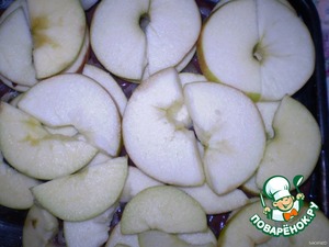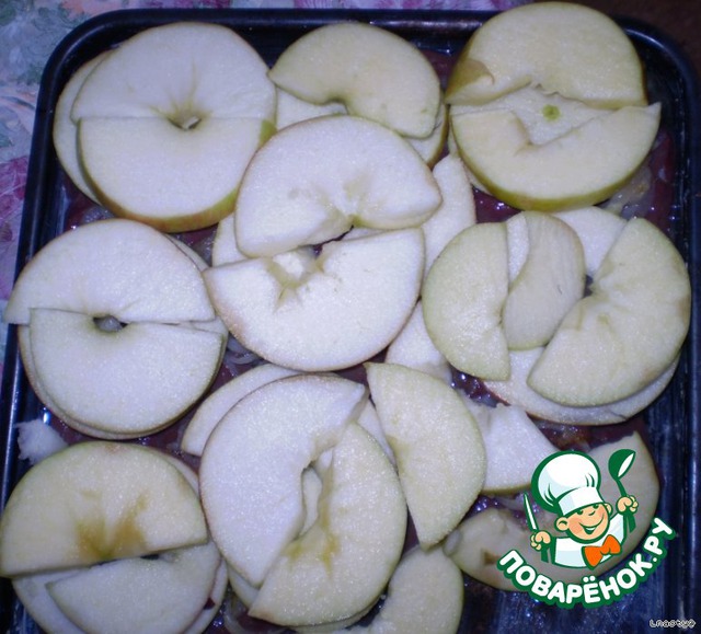 • Уложить яблоки поверх лука, плотно друг к другу.