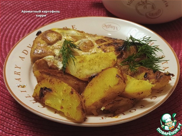 Через 10 мин. добавляем карри, куркуму, имбирь, паприку, розмарин и жарим до готовности картофеля. -