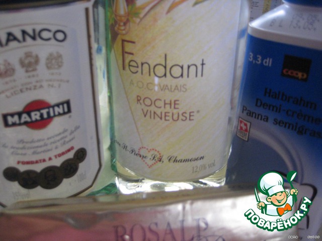 Добавим вермут и белое вино и тушим, пока жидкость не выпарится.