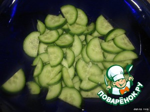Огурец разрезать вдоль, потом поперёк ломтиками (не очень тонкими).