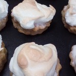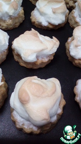 Наши печеньки испеклись. в духовке убираем огонь на 150 градусов, выкладываем на каждую печенину белковую массу (без фанатизма, оно еще увеличится в объеме).