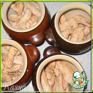В горшочки раскладываем куру