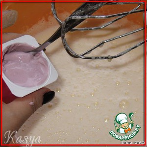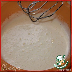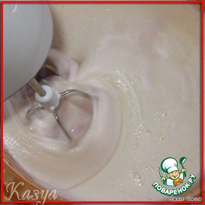 разрыхлитель смешиваем с мукой, добавляем в массу, взбиваем