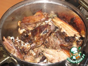 Когда курица готова, выливаем поджарку и прокипятим на медленном огне минут 7-10.