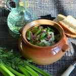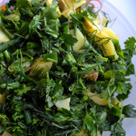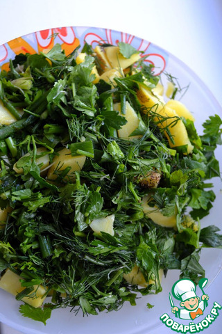 [+4]Приготовила закуску без соли, с яблочным уксусом. Из зелени взяла петрушку, укроп, кинзу и зелёный лук.