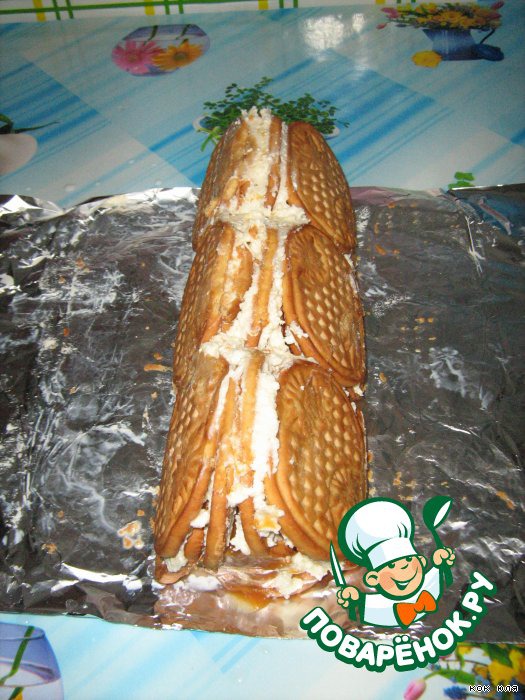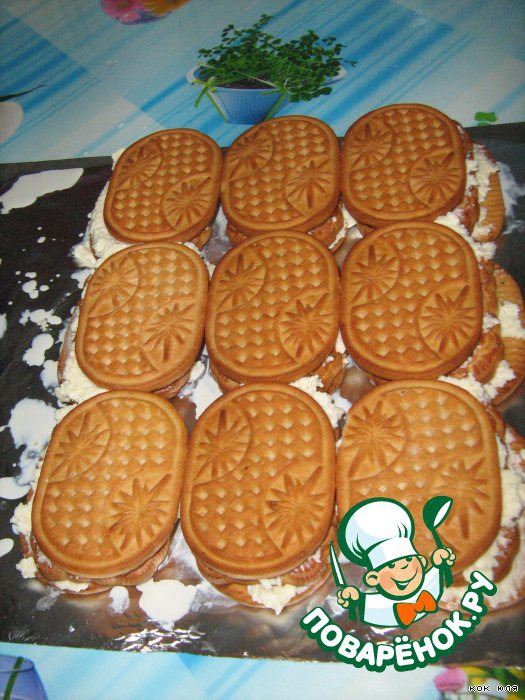 Третий слой печенья укладываем вплотную.