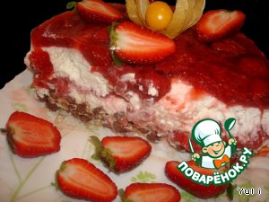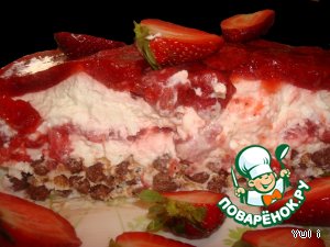 Сейчас, когда на улице так пригревает солнышко и запахло летом, совсем не хочется стоять у жаркой плиты. А сладкого хочется, да ещe, чтобы это было нечто воздушное, легкое, свежее... Выход из положения-торт без выпечки:сделан из сметанного суфле с клубничной прослойкой. Очень ароматный, нежный, да и просто красивый, а самое главное, очень легок в приготовлении. Не пугайтесь того, что здесь клубника (сезон-то не начался), свежую ягоду с успехом можно заменить на замороженную! Рецепт взят с сайта "Хорошая кухня".