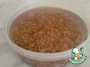 Сначала чечевицу промываем, и замачиваем на 3 часа в холодной воде.