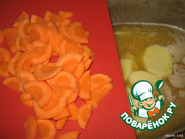 Накрыть крышкой, тушить на среднем огне минут 30. Пока тушится, подготовить овощи. Картофель, морковь, лук очистить и нарезать. По истечении 30 минут (но лучше ориентироваться на свою уточку, иногда такие "спортивные" особи попадаются), вынуть потрошки.