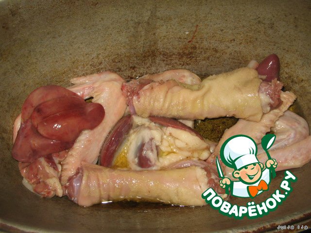 - Потроха (утиные, шея, крылья, печень, сердце, желудок) — 1 шт