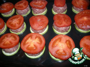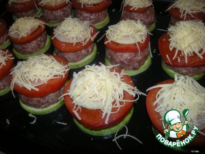 Из фарша слепить шарики, выкладываем их на кабачки. -