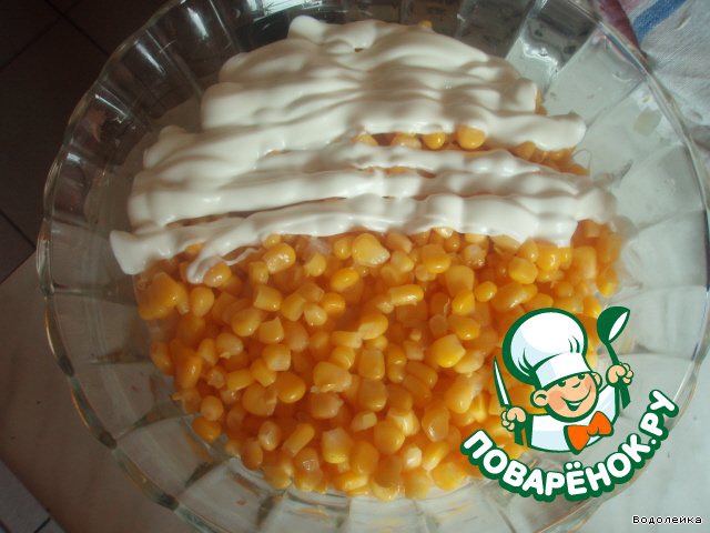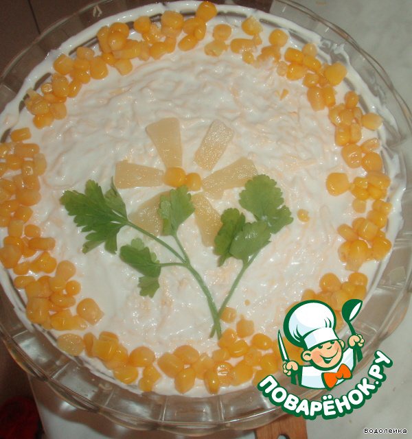 Предлагаю еще один рецепт салата. Почему такое название, да все просто: потому что в состав его входят продукты желтого и белого цвета. Сам салатик получается очень нежный.