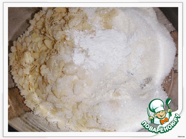 • Муку смешать с разрыхлителем и кокосовой стружкой (миндаль).