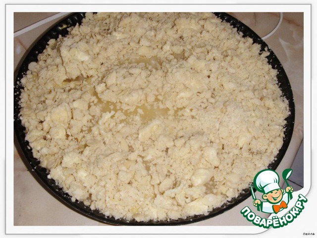 Для посыпки: 100г муки, 75г кокосовой стружки(миндаль), 75г сахарного песка, 1 пакетик ванильного сахара (10г), 150г сливочного масла.