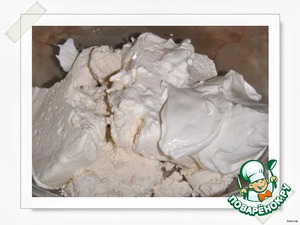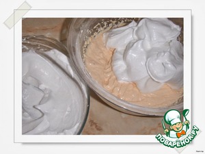 Ввести в творожную массу половину количества белковой пены, перемешать,