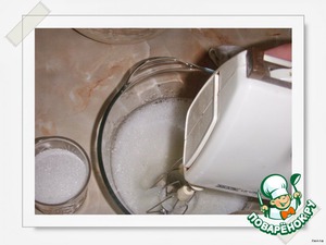Белки взбить на большой скорости, постепенно всыпая сахар,
