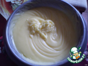 Смешать остывшую массу с размягчённым маслом (масло достать за несколько часов из холодильника). Взбить венчиком до гладкости. Пропустила часть процесса (не сфотографировала), вспомнила про фотоаппарат, когда крем был готов (извиняюсь).