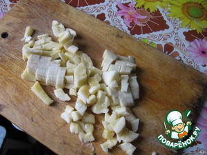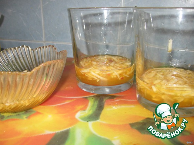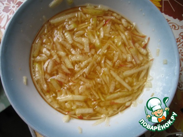 Готовим желатин по рецепту на пакетике. Трем на терке яблочко и смешиваем его с соком, и с сахором по вкусу.