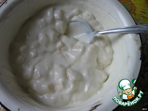 Смешиваем йогурт, сметанку, банан и добавляем (для любителей сладенького) сахарку.