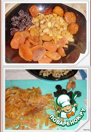 Для начинки сухофрукты моем, вынимаем косточки, нарезаем