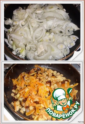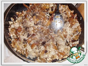отдельно слегка обжарить (потушить) сухофрукты, орехи -