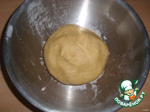 ...понемногу добавляя смесь муки, орехов и сахара, замешиваем тесто...