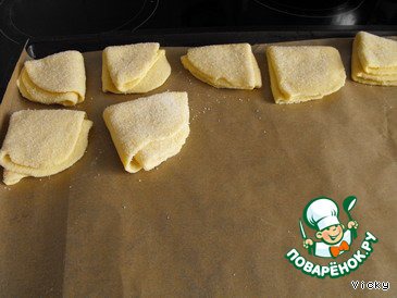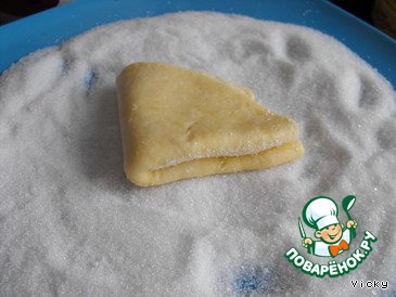 Получившийся полукруг опять обмакнуть в сахар и снова сложить сахаром внутрь