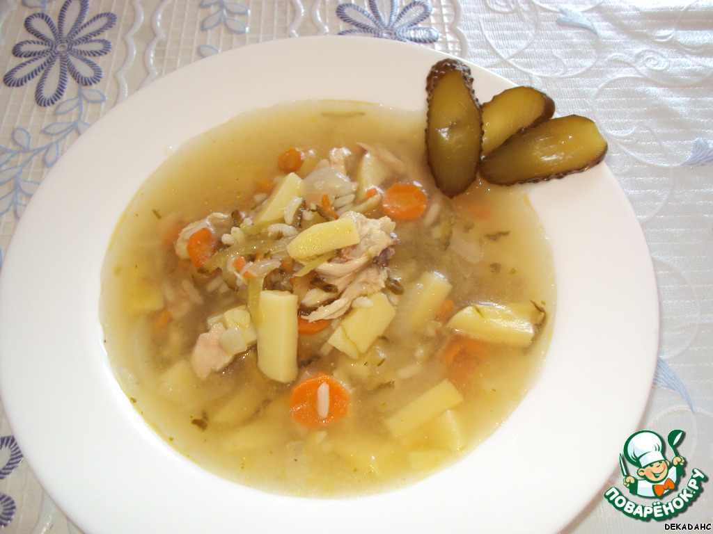 Минуты за 3 до полной готовности выкладываем огурцы в рассольник, добавляем специи. Если рассольник получился недосоленый, то я вместо соли использую огуречный маринад.