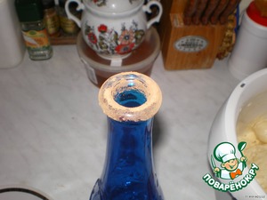 Шарик из теста прикладываем к горлышку бутылки и слегка давим на тесто.