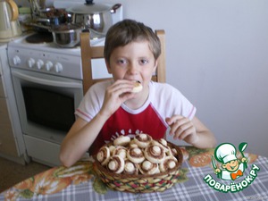Вы думаете, у Егора в руках грибы? Вы ошиблись! Это вкуснейшее и нежнейшее печенье. Мы испекли его на конкурс "Silver Line на радость детям" и для того, чтобы и вы могли порадовать этим печеньем своих деток. Угощайтесь!!!