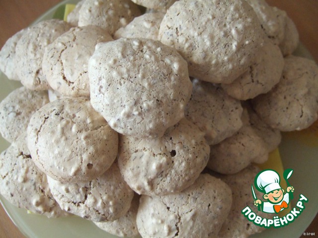 Противень выстeлить бумагой для выпекания. С помощью двух маленьких ложечек выложить белковую массу на противень и выпекать минут 15- 18. -