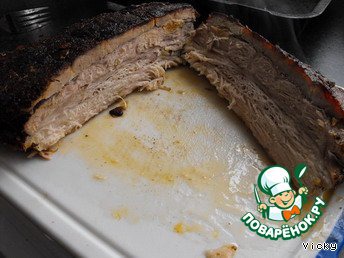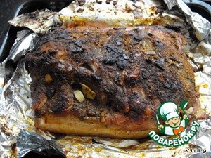 • Положить на противень и поставить в духовку на 2 часа ( на кило мяса-1 час) , t - 180-200\'