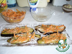 Выложить на тарелку, смазать сначала смесью с чесноком, затем майонезом, выложить морковь, обильно посыпать петрушкой.