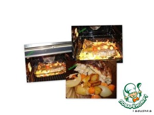 Разогреваем духовку до температуры 180 градусов в режиме "гриль" и помещаем в нее форму или противень с рыбой и овощами.