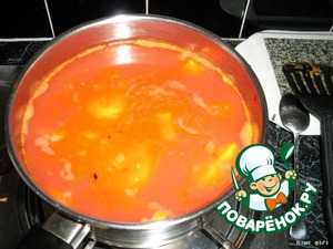 Суп должен побулькивать, но не кипеть, а то помидоры станут кислыми. -
