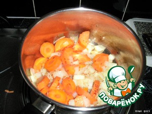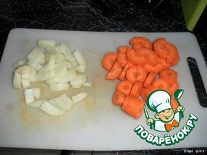 Нарежьте морковь и лук на средней величины кусочки (главное, не режьте морковь слишком толсто, а то она варится очень долго будет)