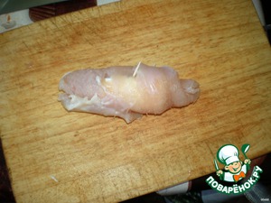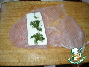 Рецепт «Рулетики из индейки с грибами и брынзой»: