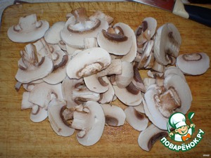 шампиньоны очистить, нарезать ломтиками